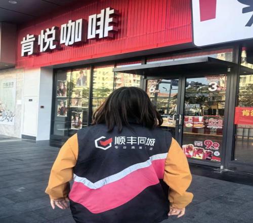 曾雪梅还穿着顺丰外卖的装备送外卖